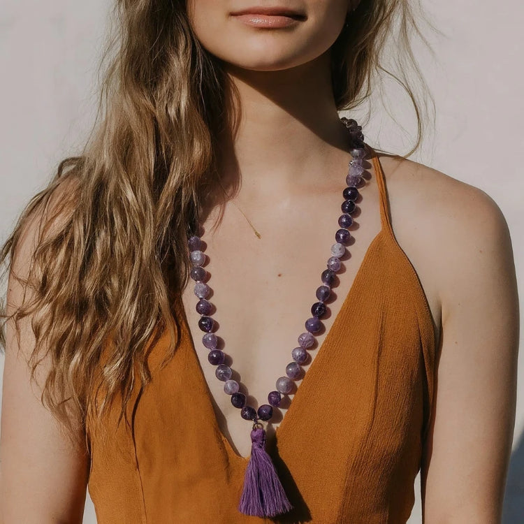 Bracelet Mala en Améthyste & Symbole Om – Élévation Spirituelle & Sérénité Intérieure