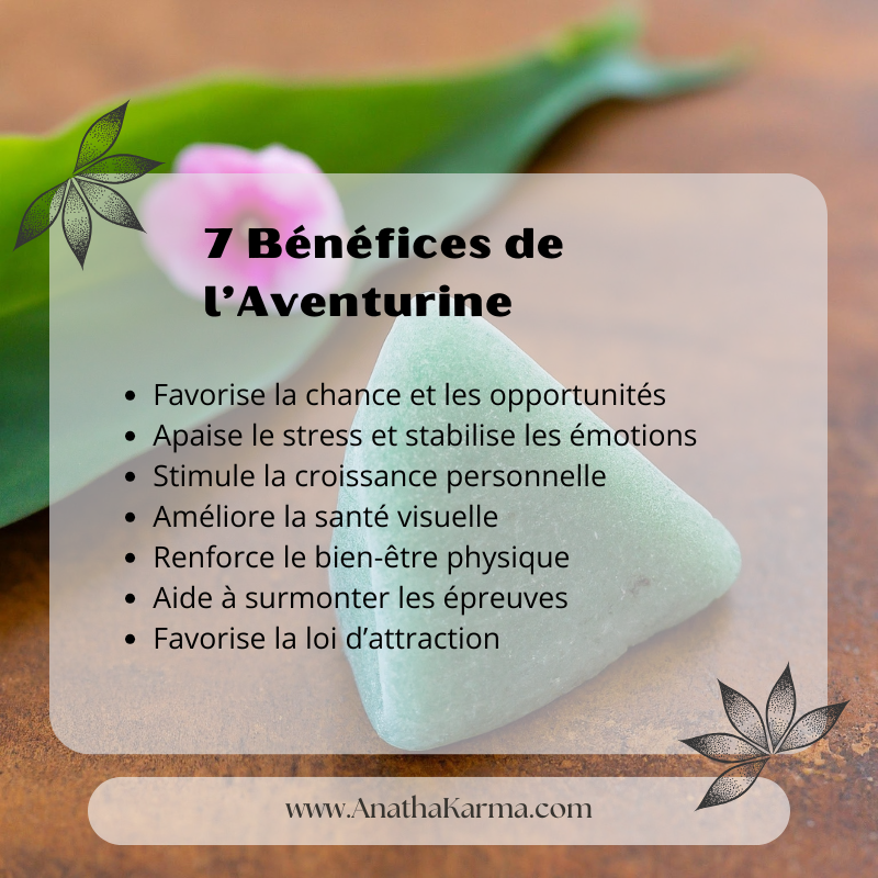 L’Aventurine, connue comme la pierre de la chance et de la croissance intérieure, est idéale pour apaiser l’esprit tout en insufflant une énergie renouvelée et équilibrée.