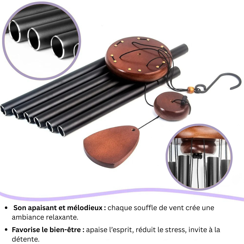 Un son clair et apaisant : Réglé avec précision, chaque mouvement du vent fait naître des mélodies douces qui apaisent l'esprit et créent une ambiance relaxante.