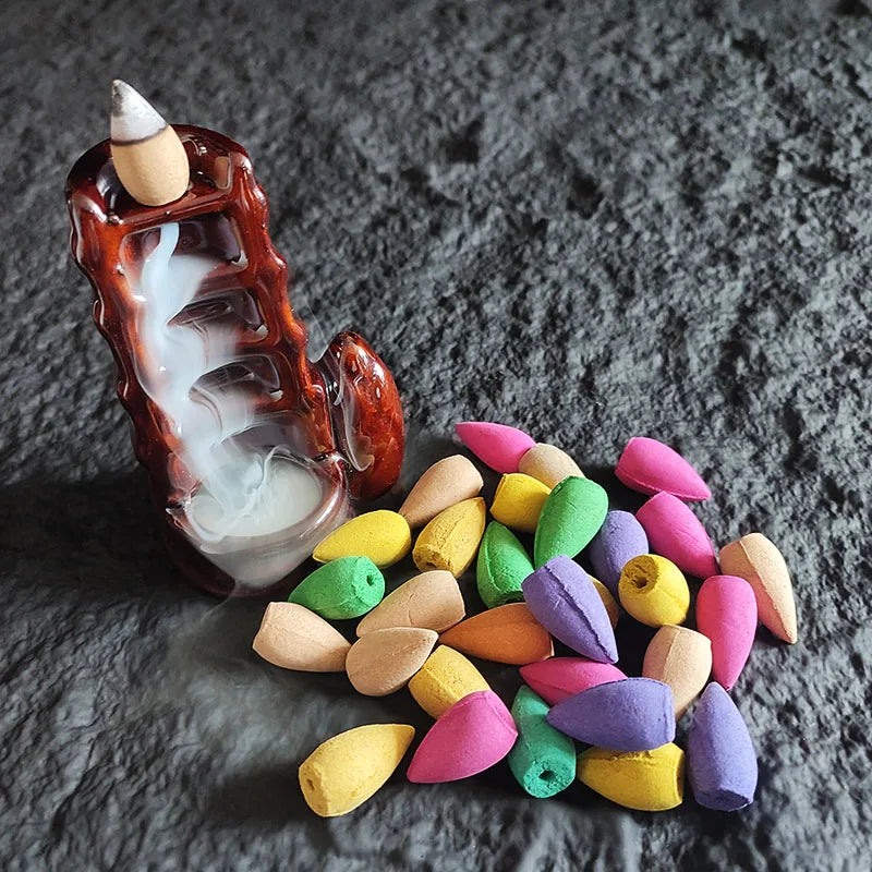 Encensoir à reflux : Conçu pour les cônes d’encens spécifiques, il génère une fumée qui descend en cascade, créant un effet visuel apaisant et spectaculaire, parfait pour la relaxation ou la méditation.