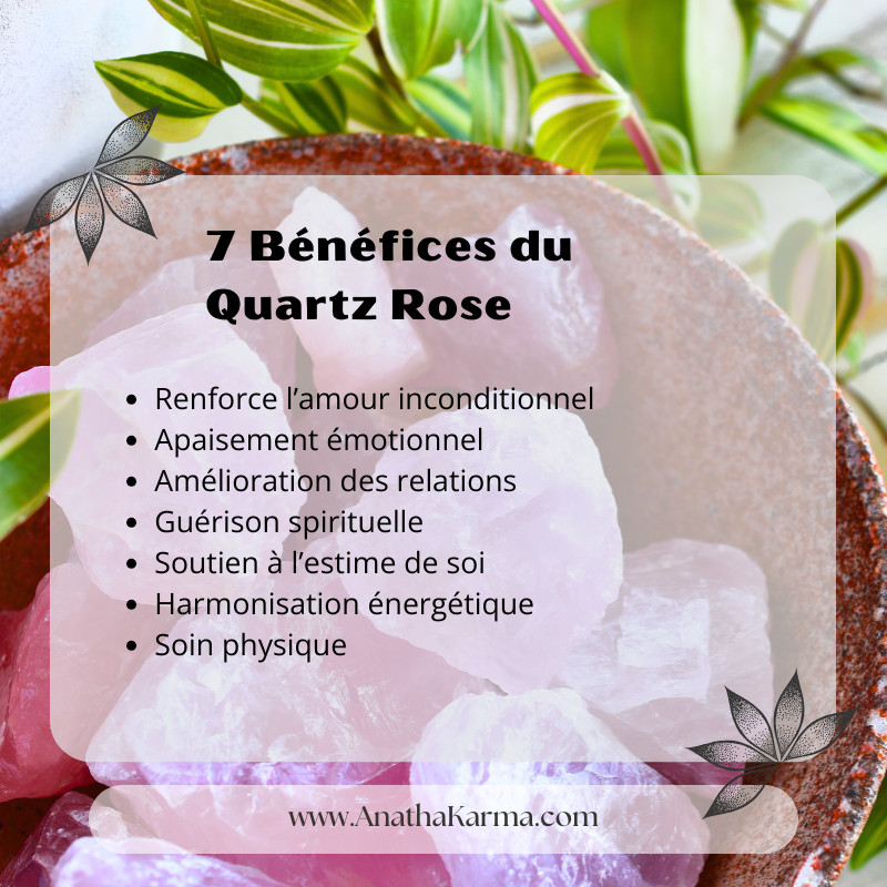 - Quartz rose : aide à guérir les blessures émotionnelles.