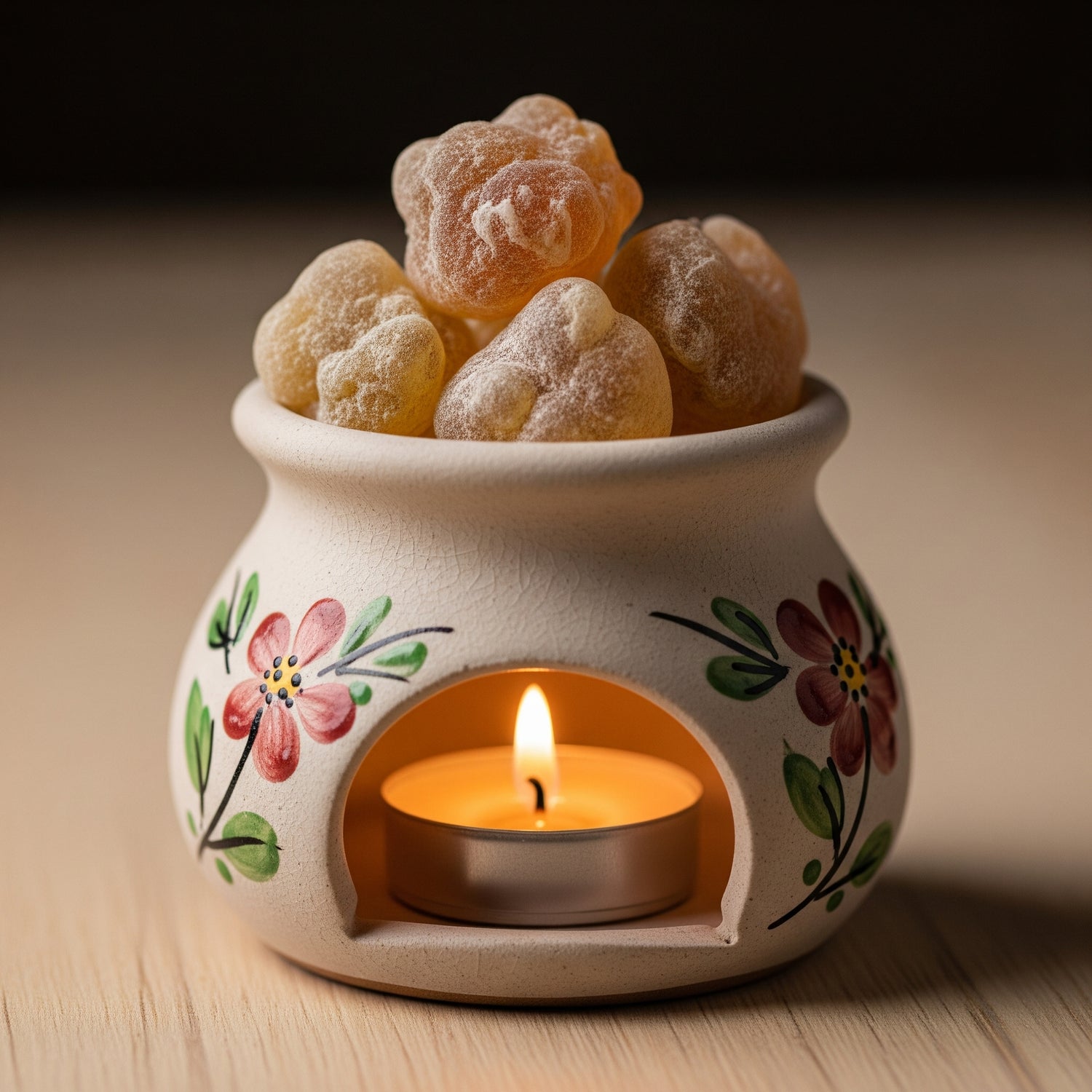 Encens en grains : Utilisé dans des encensoirs spécifiques, idéal pour les rituels spirituels.